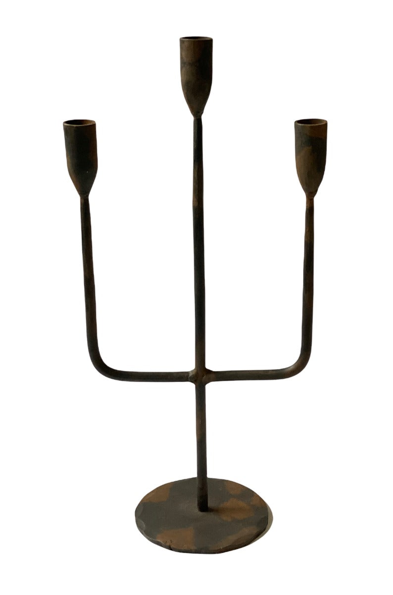 Crafted by skilled artisans, the Candelabra 3 is a stunning addition to any home décor. Handmade from forged iron, its unique design will surely catch the eye. Made with sturdy metal, this candelabra is a timeless piece that is built to last. Elevate your space with this exquisite and durable eyecatcher.