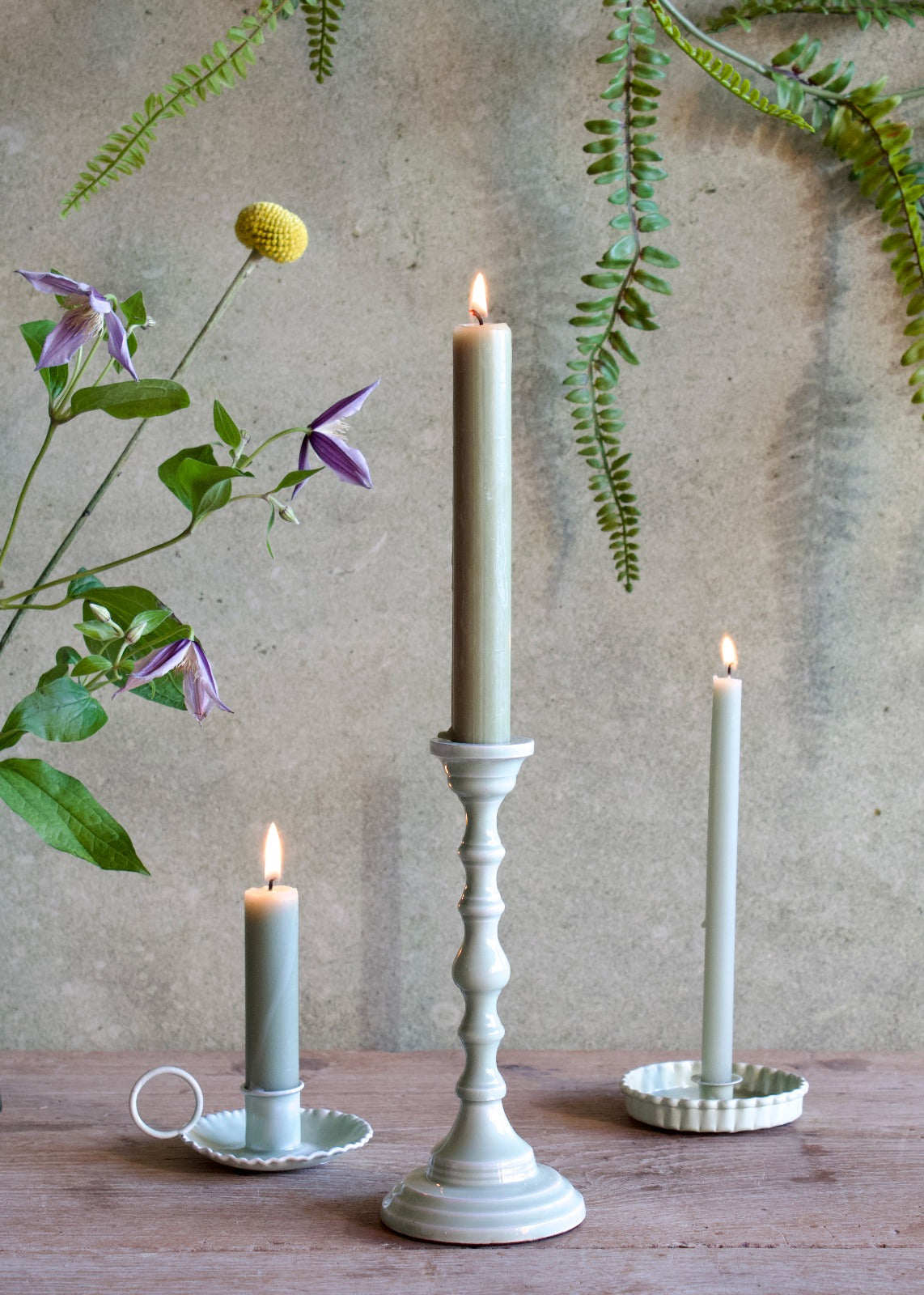 Bougeoir en émail fait main dans un élégant vert menthe.