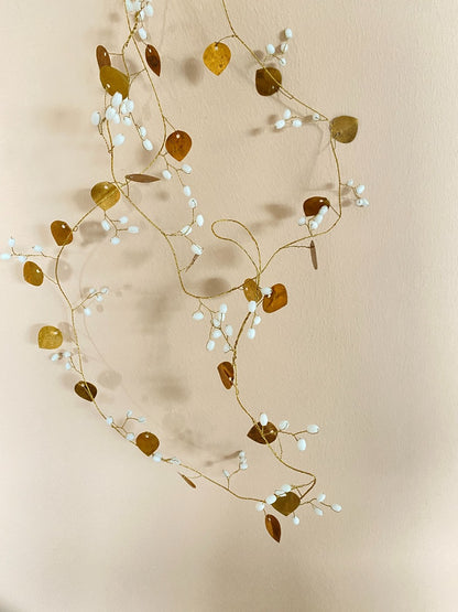 Apportez une touche d'élégance festive à votre intérieur avec cette guirlande artisanale dorée ornée de baies artificielles blanches. Confectionnée en laiton, elle confère une note chaleureuse et raffinée à votre espace.