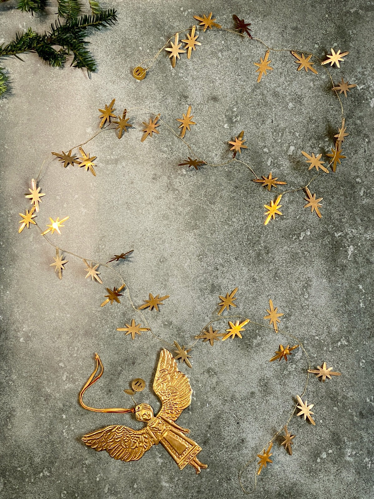 Guirlande Étoile du Nord TI1124, une charmante décoration en laiton taillé à la main. Chaque étoile est soigneusement façonnée pour capter et refléter la lumière. Idéale pour les fêtes ou comme élément décoratif tout au long de l'année, elle apporte une touche de magie céleste à votre intérieur.
