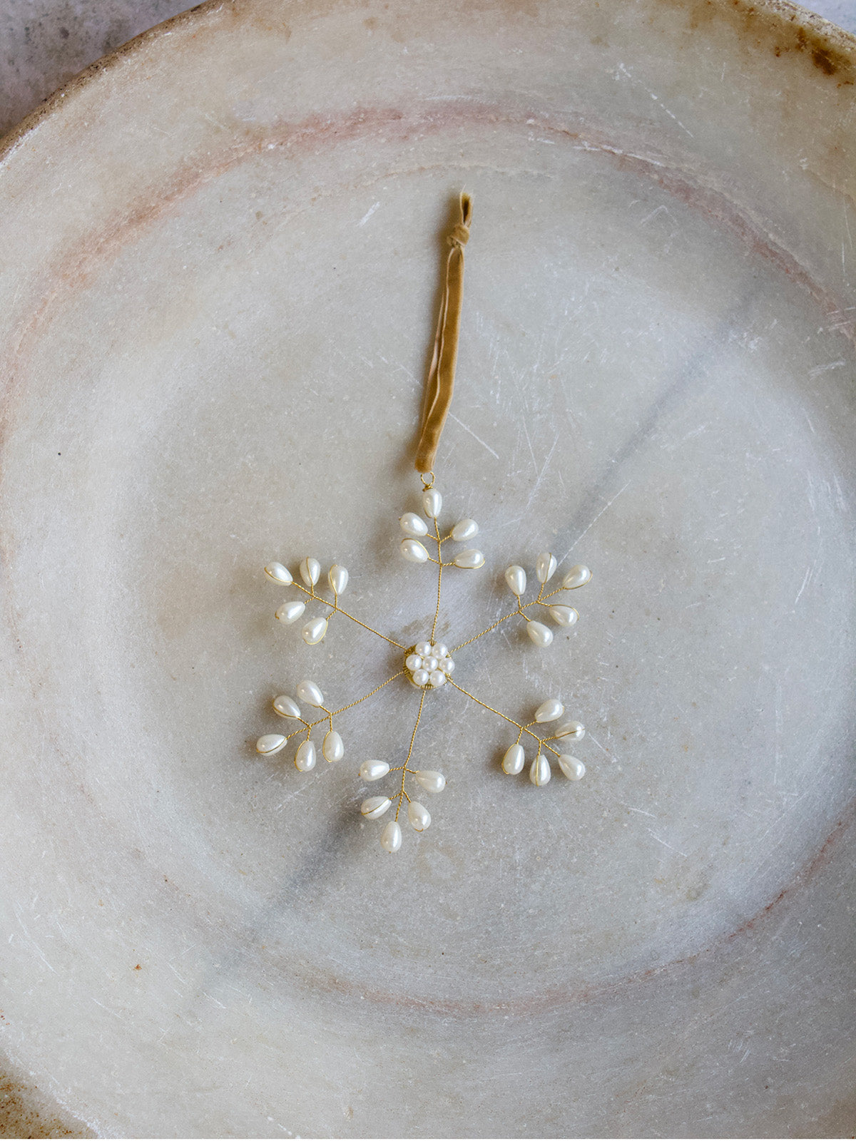 Etoile très délicate faite à la main avec des perles sur un cordon de velours.