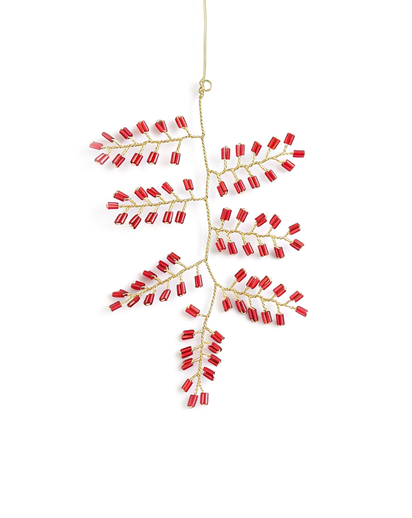 Voeg feestelijke warmte toe aan je interieur met dit decoratieve takje, gemaakt van goudkleurig messing en versierd met felrode kunstbessen. Met zorg handgemaakt, geeft het een vleugje feestelijke elegantie aan elke setting.