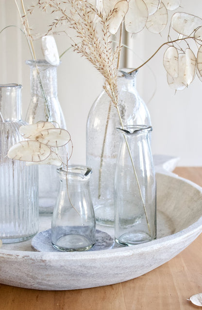 Verrijk uw dinerervaring met onze transparante glazen karaf, zorgvuldig vervaardigd met traditionele mondblaastechnieken. Elke WEL191 karaf vertoont unieke subtiele variaties, waardoor het een bijzondere toevoeging is aan uw tafelsetting. Perfect voor het elegant serveren van water, sap of wijn. Dit zijn de laatste exemplaren in onze collectie, dus mis uw kans niet om dit prachtige handgemaakte item te bemachtigen!