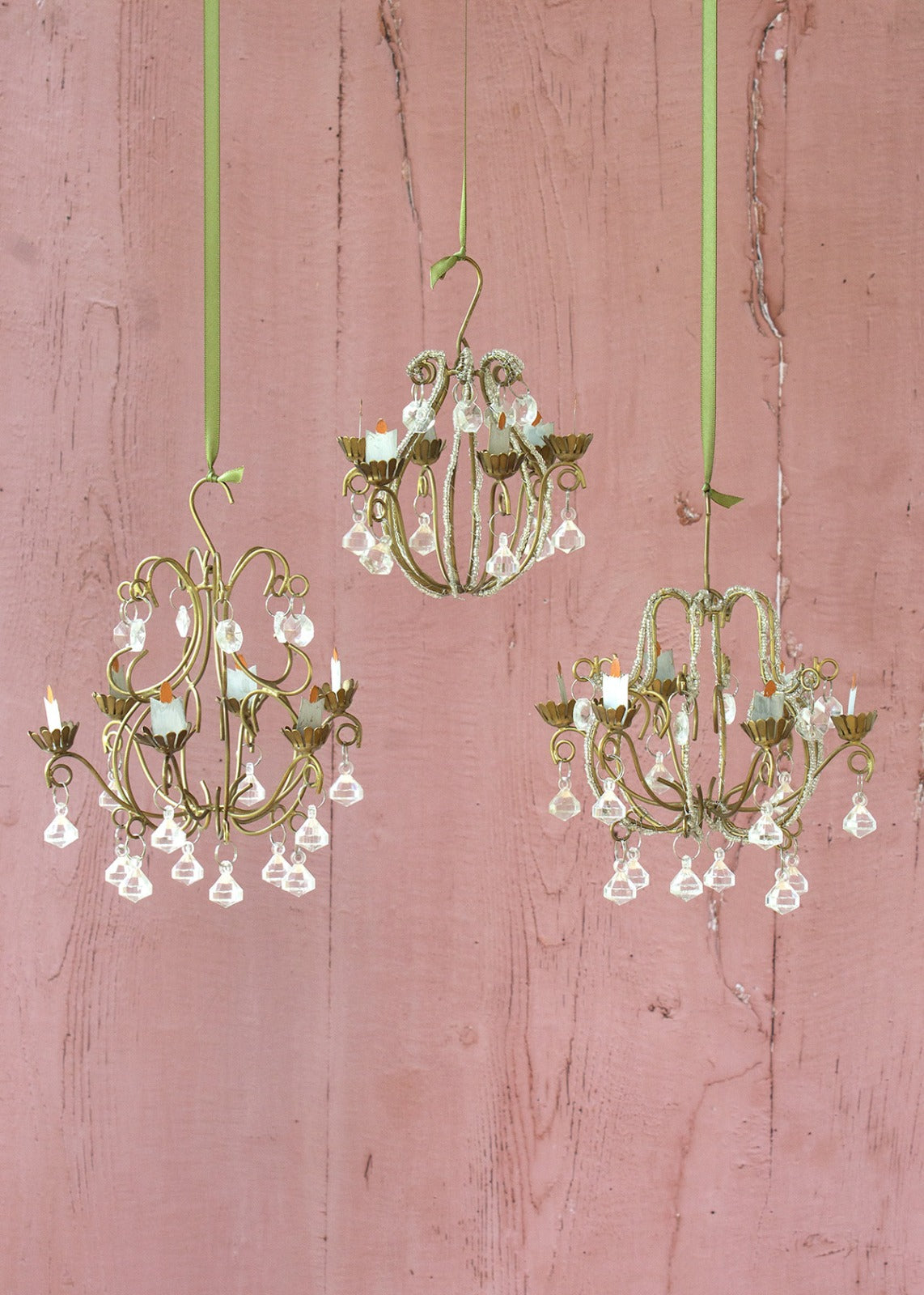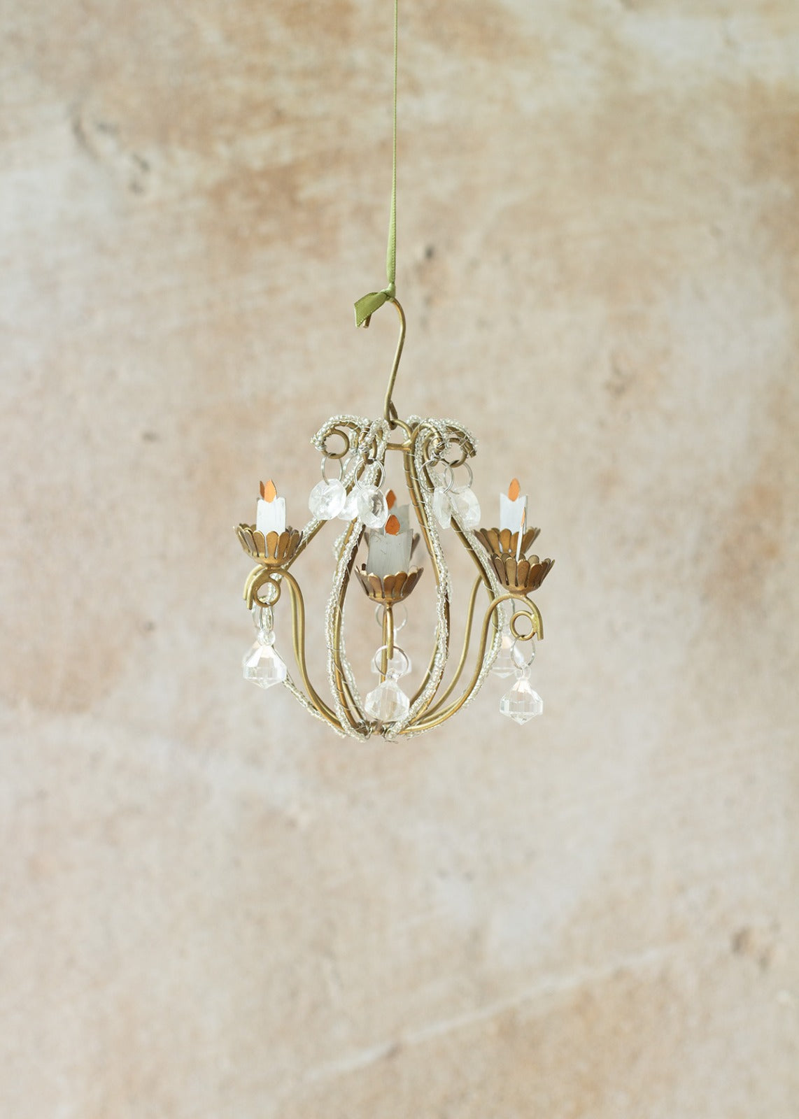 Pretty little chandelier with glass elements and candle holders. Small size.
