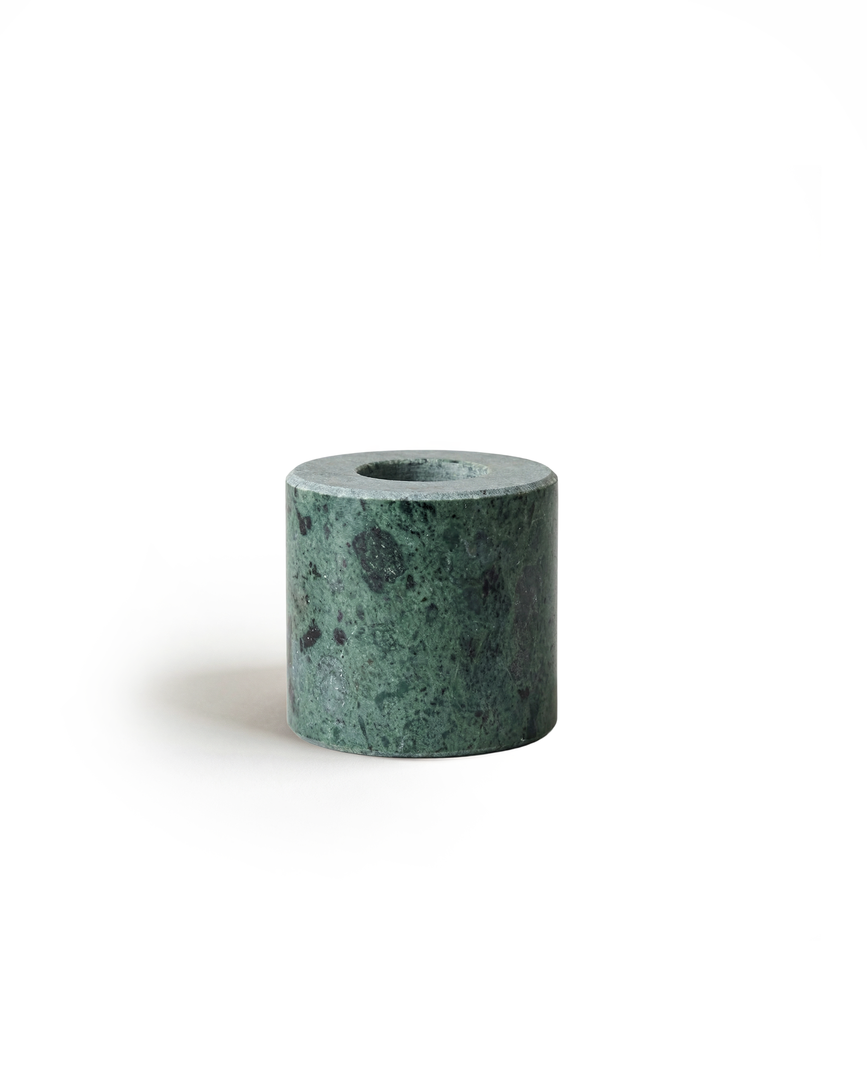 Tijdloze handgemaakte kaarsenhouder van groen marmer. Elke kaarsenhouder is uniek in uiterlijk en kleur.
