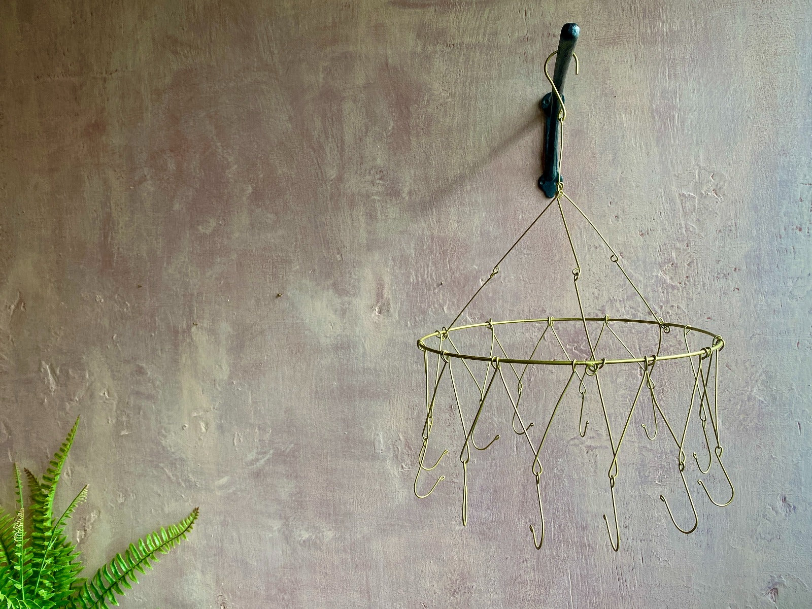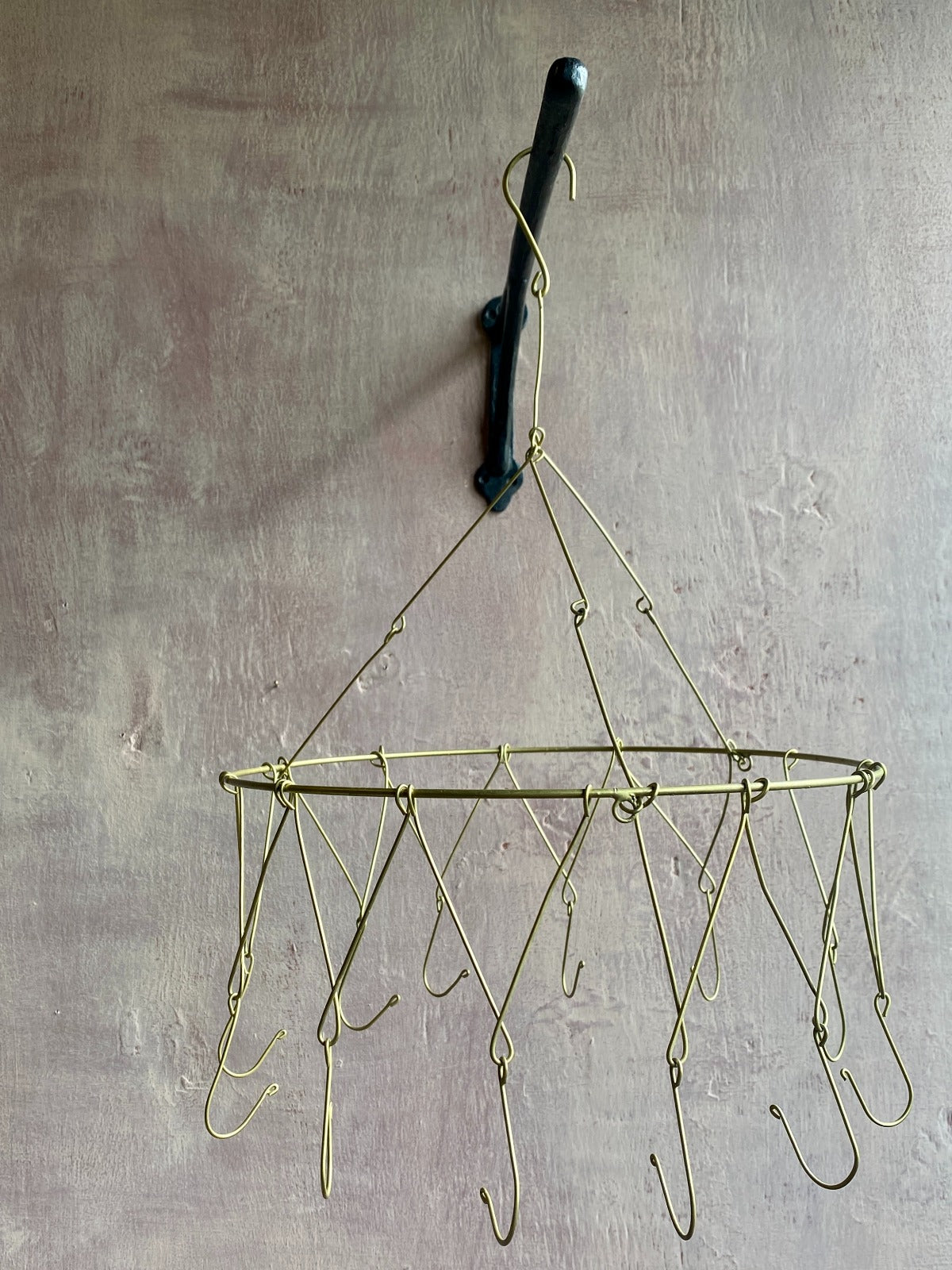 De hanger is verkrijgbaar in de kleur messing, is opvouwbaar en wordt plat geleverd.