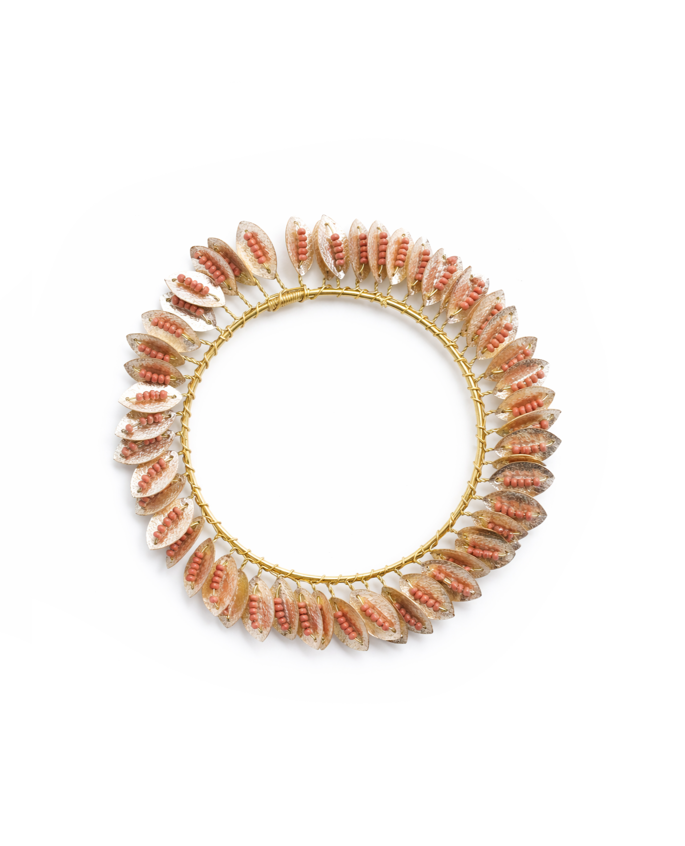 Verfijnde handgemaakte krans met kleine blaadjes.