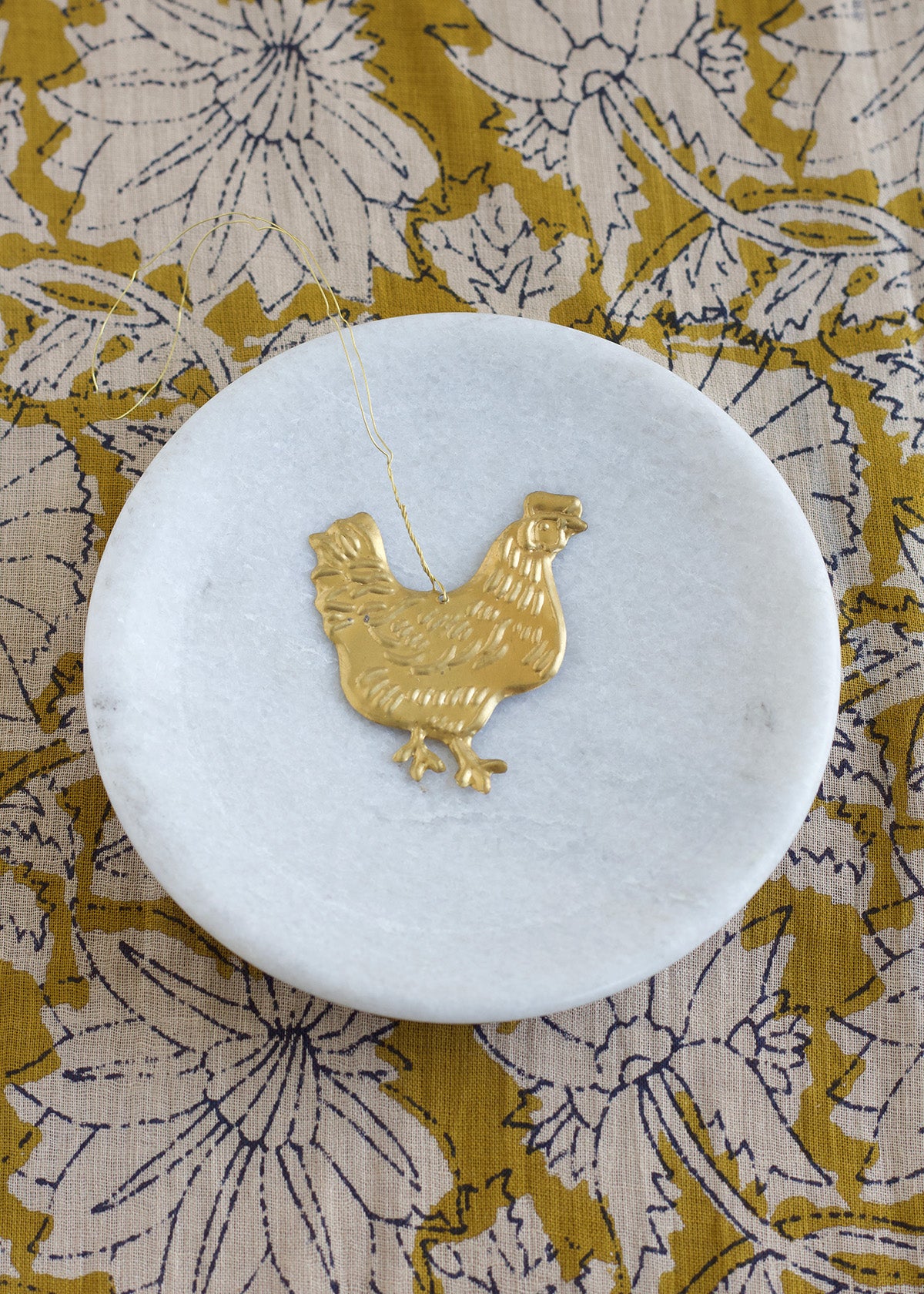 Handgemaakte hangdecoratie in de vorm van een kip.