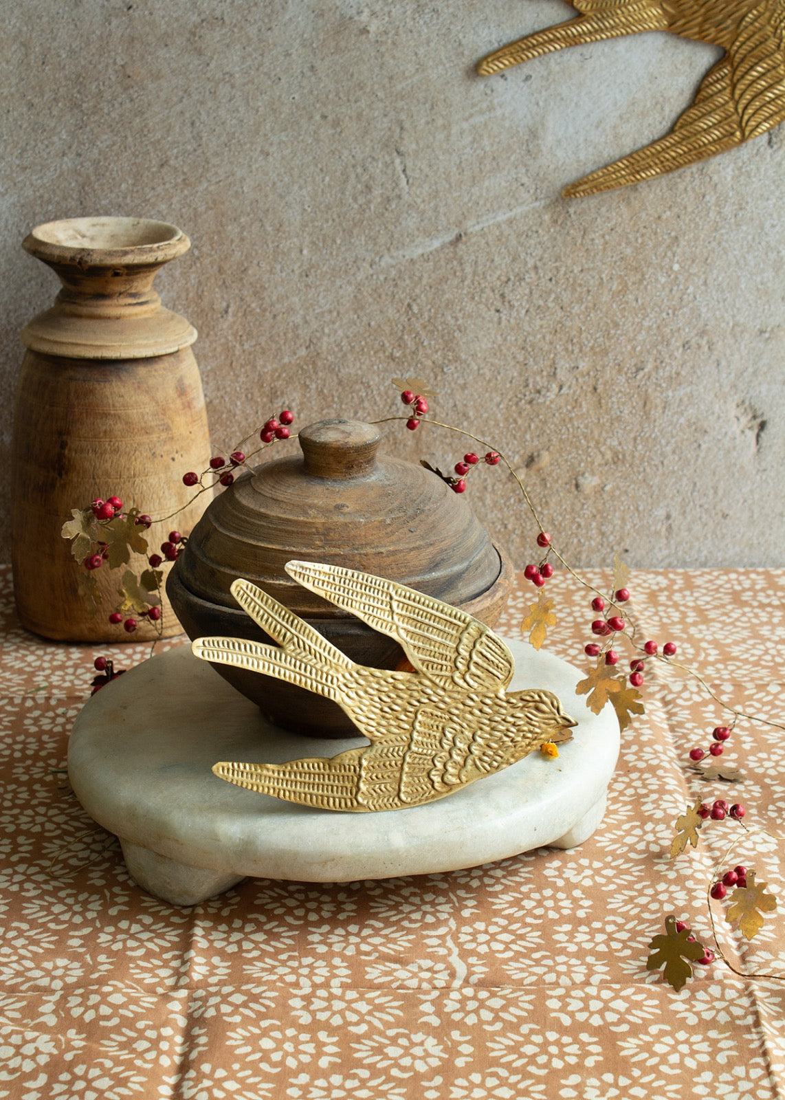 Prachtige handgemaakte goudkleurige messing slinger met eikenbladeren en rode bessen.