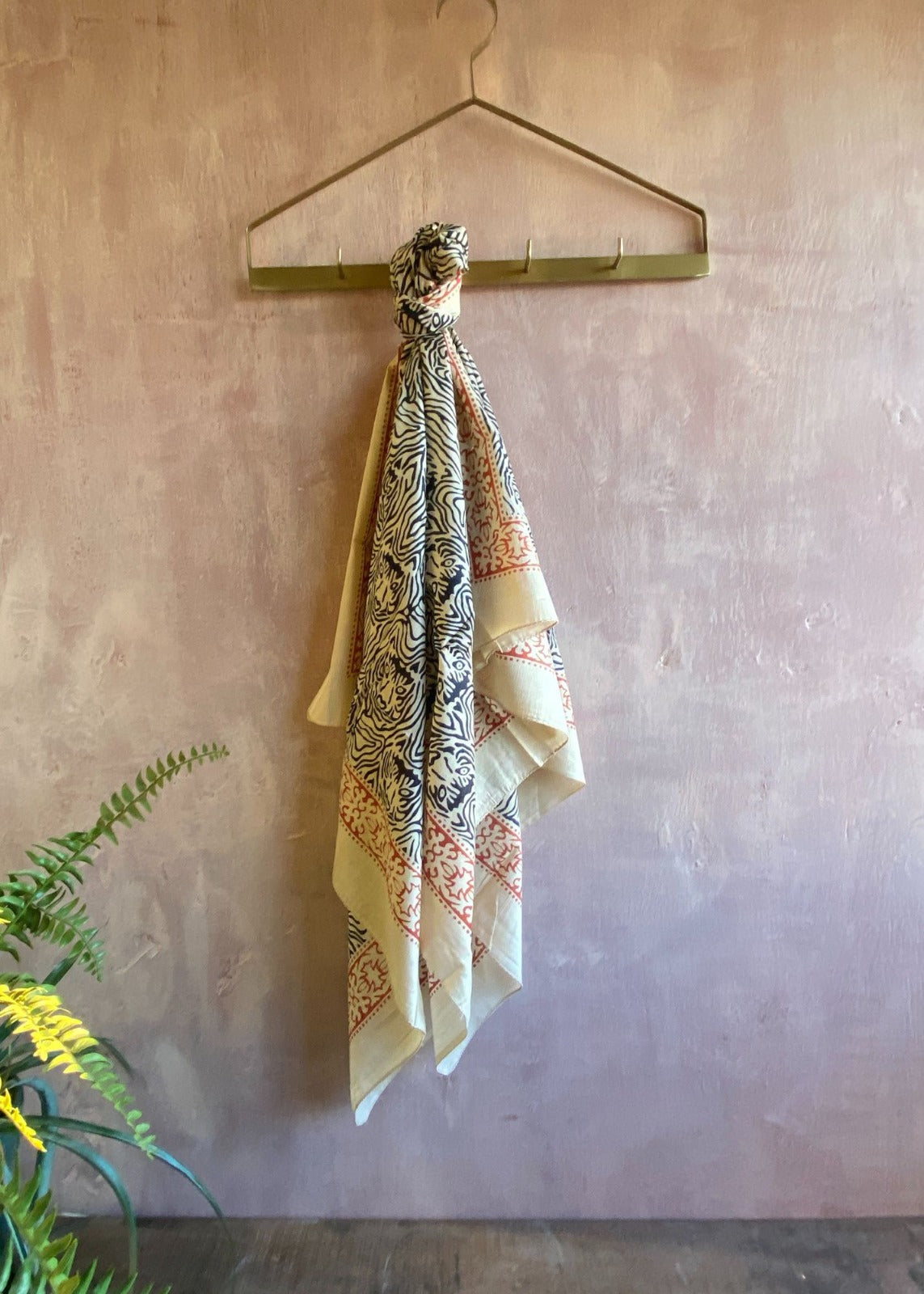 Handgemaakte katoenen pareo of sarong met origineel blokdrukontwerp met afbeelding van een leeuw.