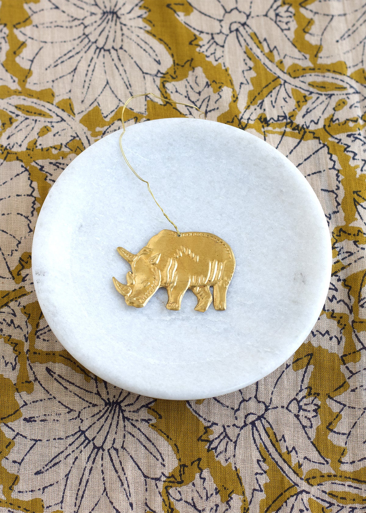 Handgemaakte hanger in de vorm van een neushoorn.