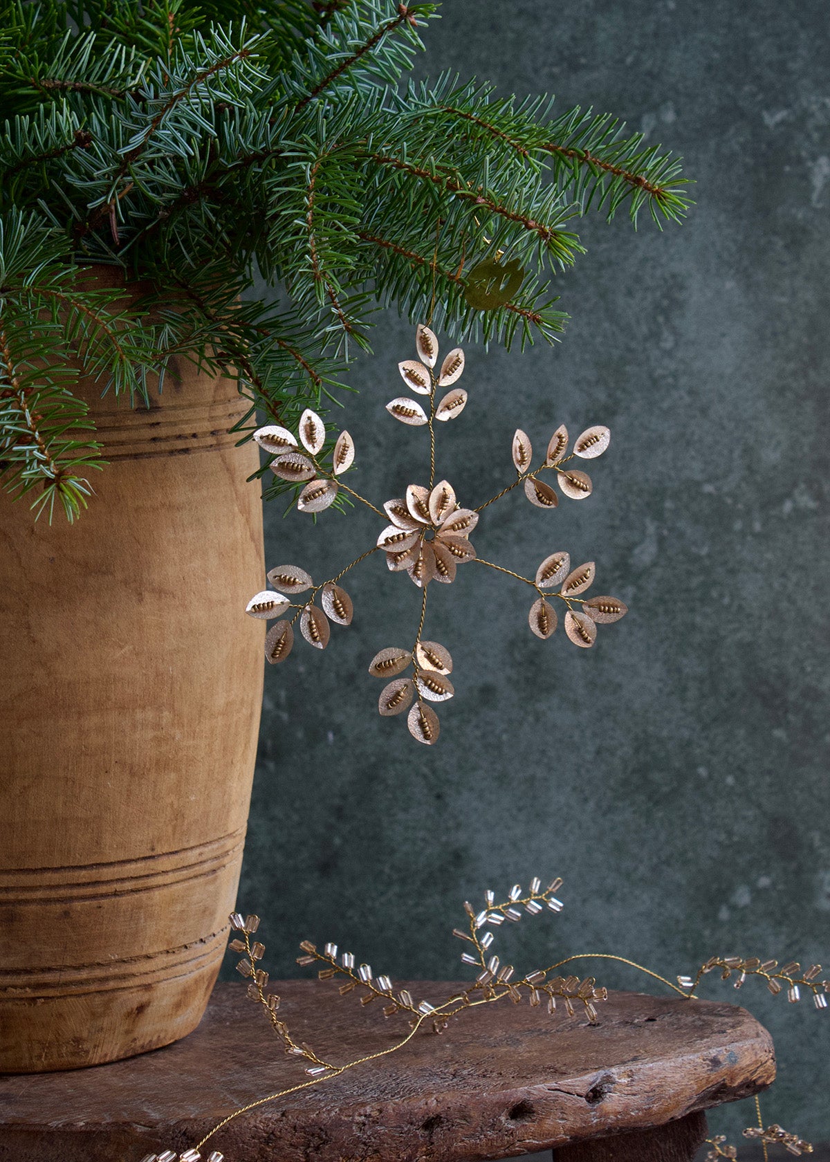 Handgemaakte metalen ster van gouden pailletten. Een pailletten of paillette is een schijfvormige versiering op kledingstukken.