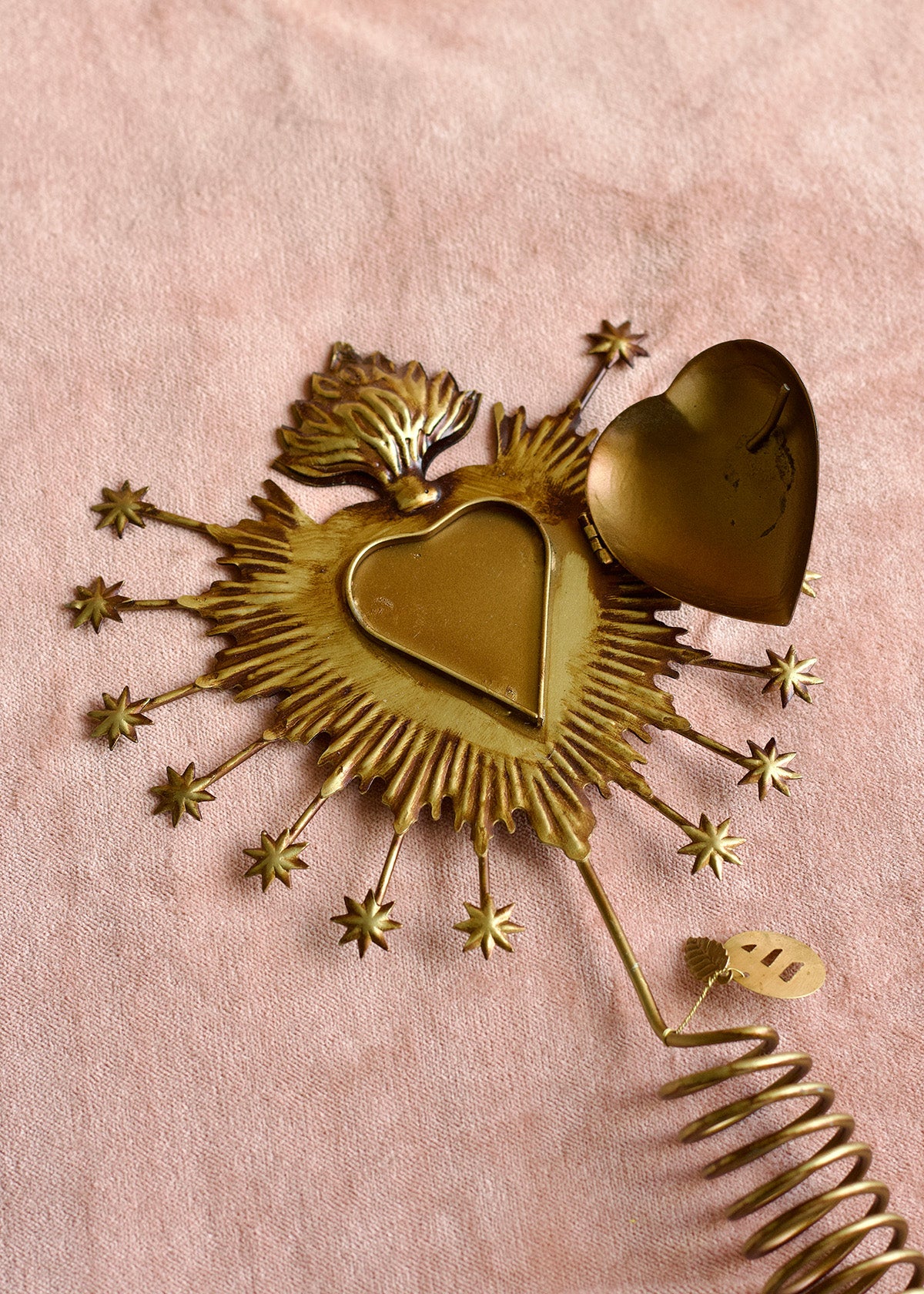 De Tree Topper Sacred Hearts NAW23153 is een handgemaakt messing exemplaar dat de rijke decoratieve traditie van India viert. Met gelaagde hartmotieven en complexe details vormt hij een opvallend accent voor feestelijke bomen, schouwen of seizoensdecoraties. Perfect voor boetieks, want hij belichaamt warmte, symboliek en ambachtelijk vakmanschap in elk detail.