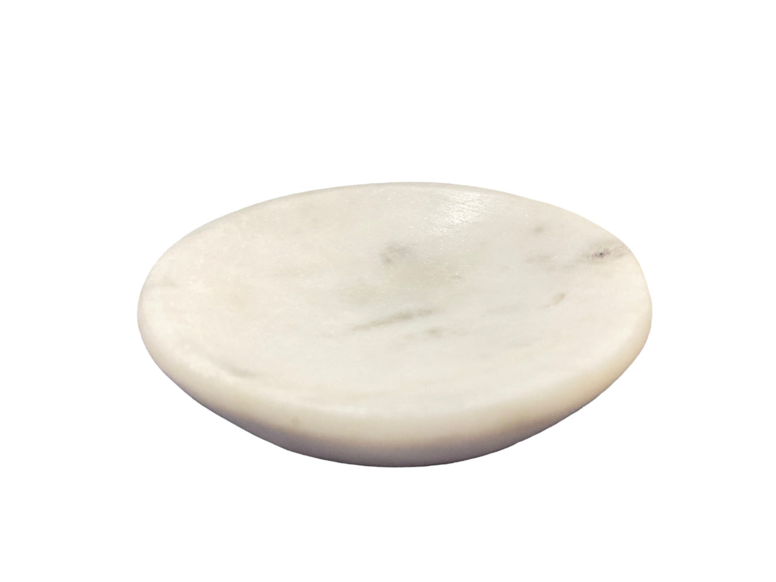 Tijdloze zeepschaal in wit marmer. Elke schaal is handgemaakt, dus uniek in uiterlijk en kleur.