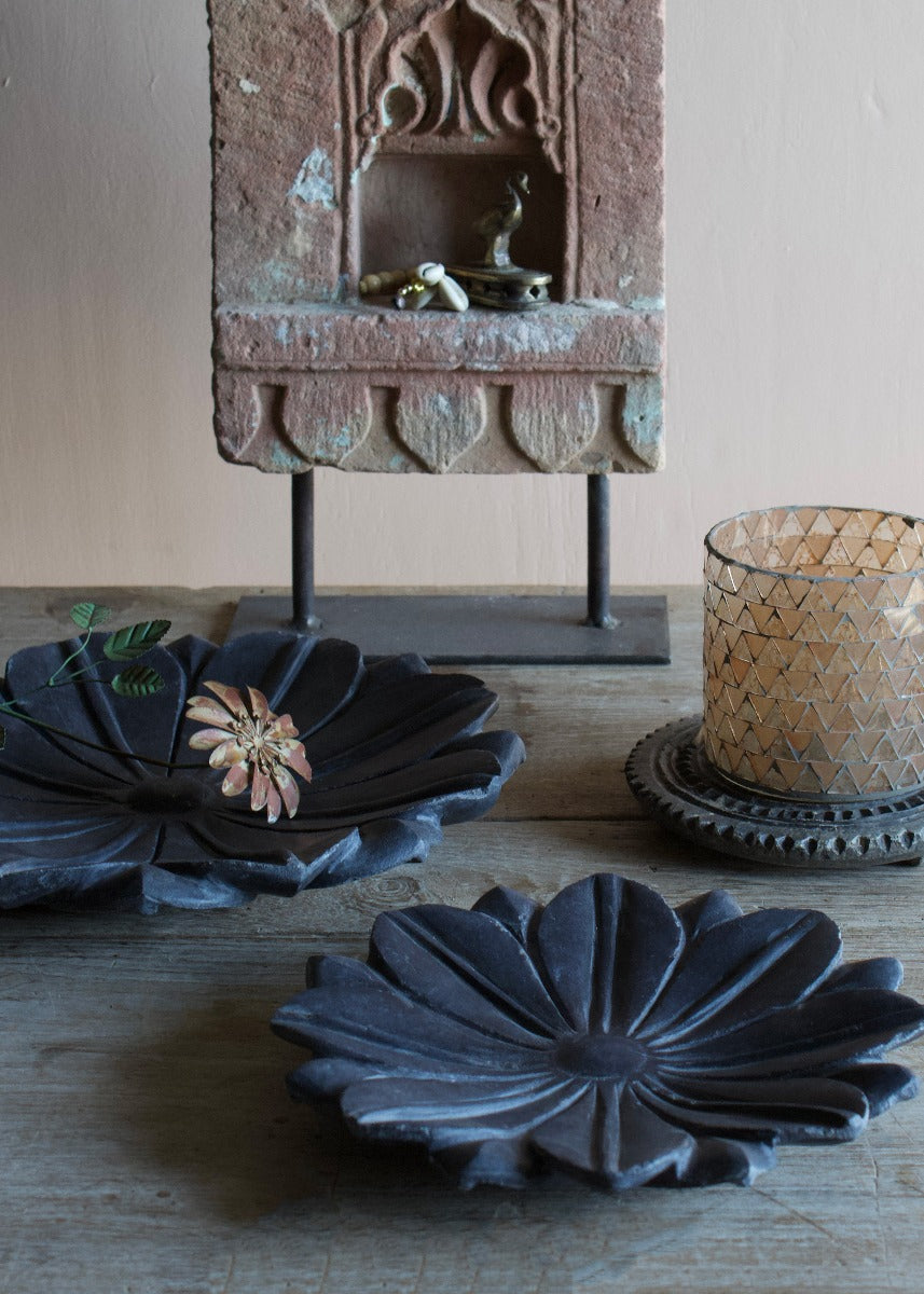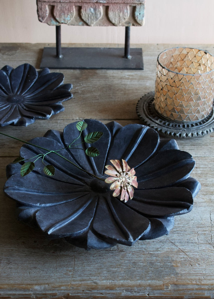Decorative marble bowl Black Velvet in the shape of a flower. Handmade by Weldaad Authentic Interiror Amsterdam.