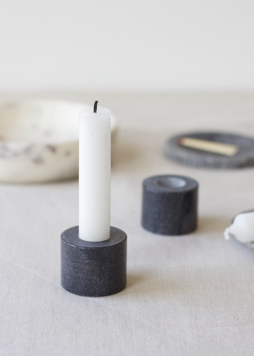 Handmade candleholder in black marble. Timelessly beautiful due to the simplicity of its design.