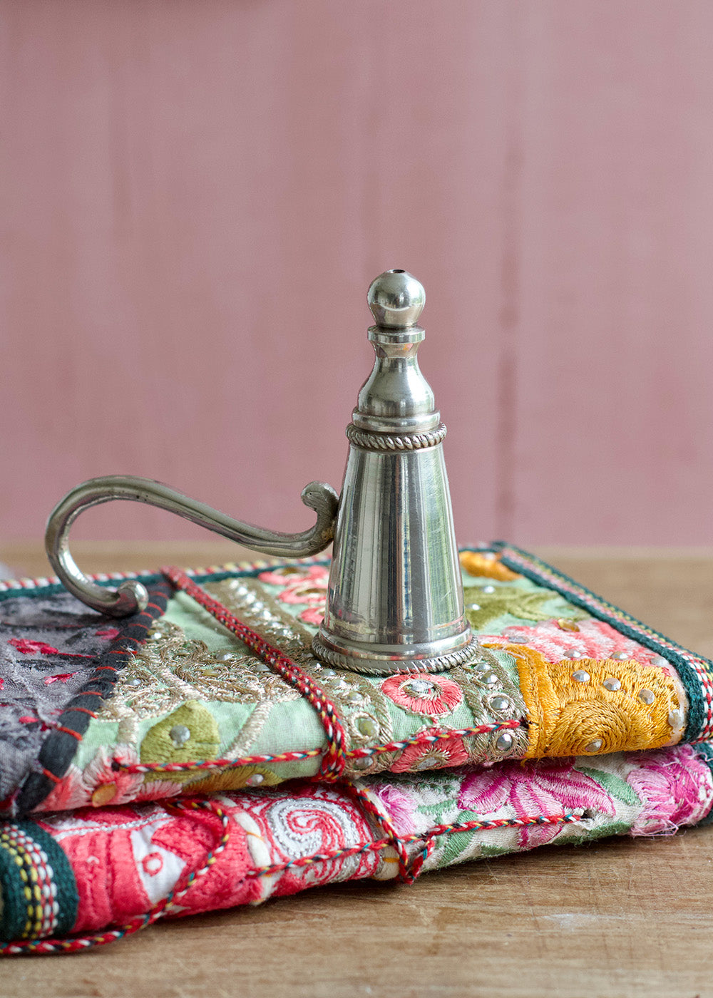 This elegant candle snuffler in brass with a silver finish helps you safely extinguish candles without smoke or wax splatter. Its classic design makes it a practical and stylish