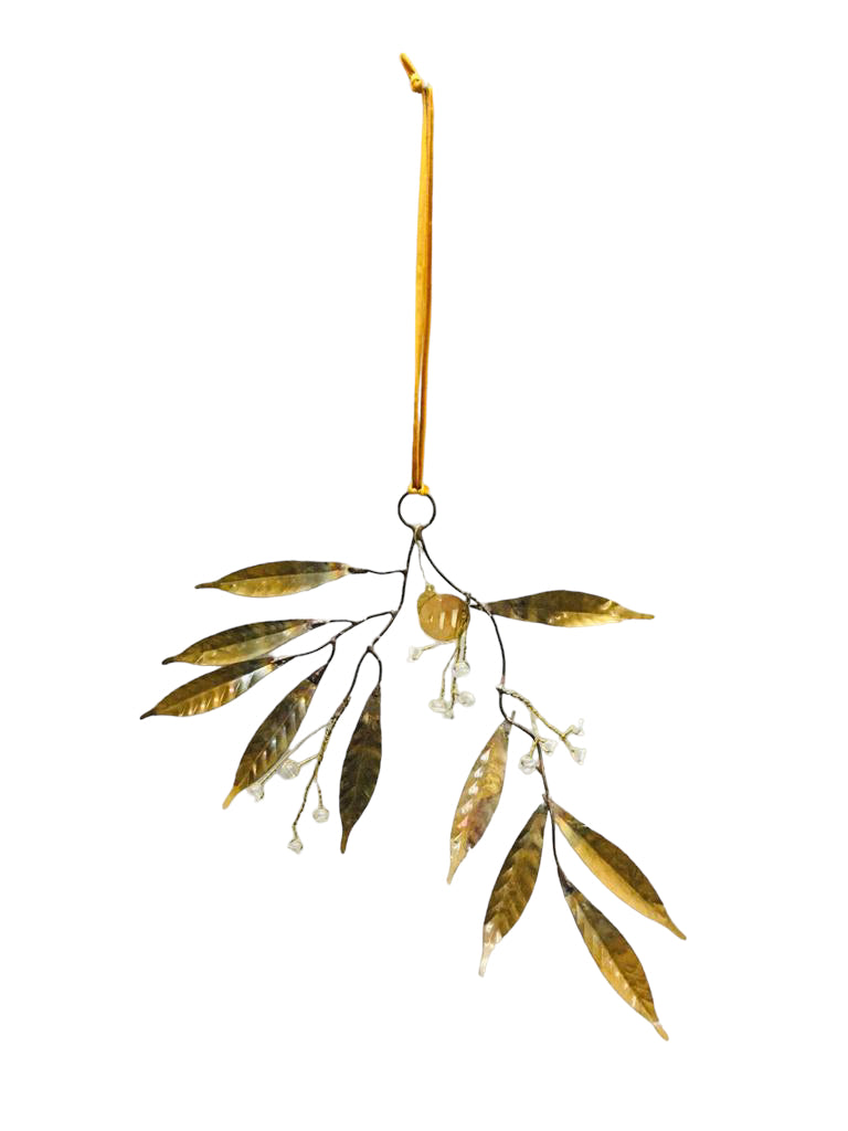 All our products are lovingly handmade—mirrors, brass, and patina—each carrying a unique, authentic charm. Slight imperfections may occur, reflecting the artisanal process. This piece features brass-colored metal, transparent glass beads, and is elegantly finished with a velvet ribbon for a refined touch.