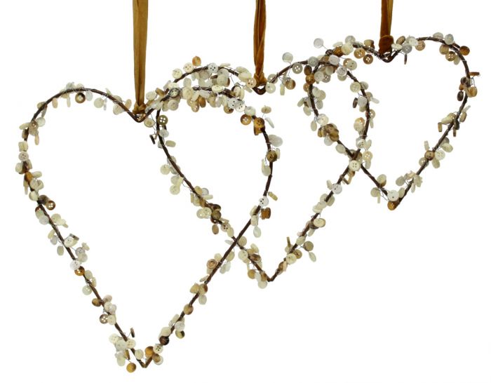 Set of 3 button hearts, small, medium and large 22/17/14 cm