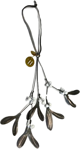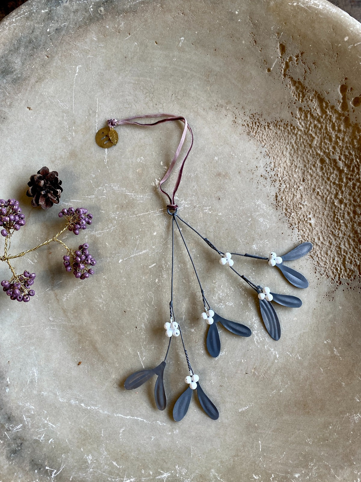 Bring festive charm to your decor with this handmade mistletoe twig crafted from zinc and adorned with white berries.