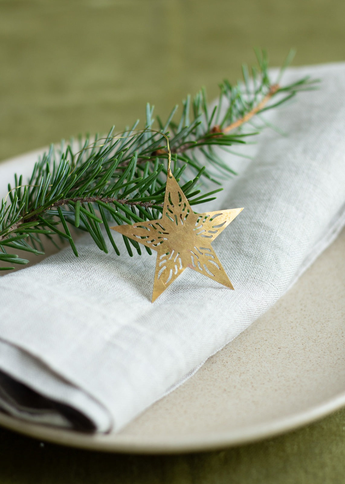 Hand crafted brass holiday ornaments, 3 different brass stars in one set, 60 pieces in a box