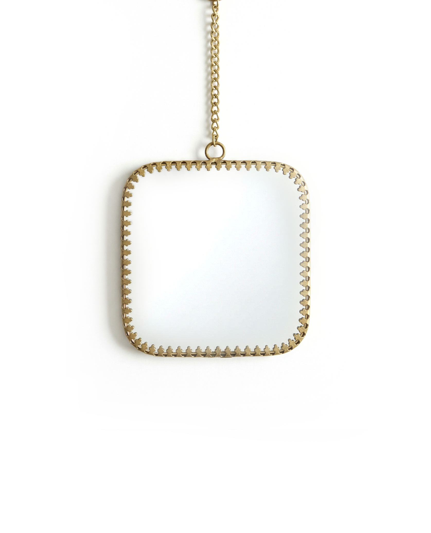 This handmade square mirror with golden color finish instantly adds atmosphere to an interior.