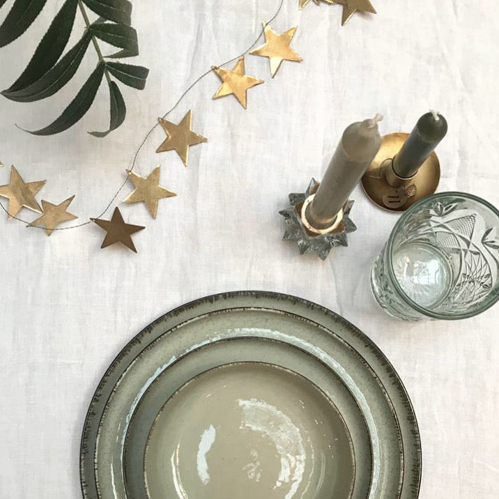 Add sparkle to your festive decor with this handmade brass garland adorned with many little stars. Perfect for decorating your Christmas tree or draping stylishly over a sturdy branch. A magical piece.